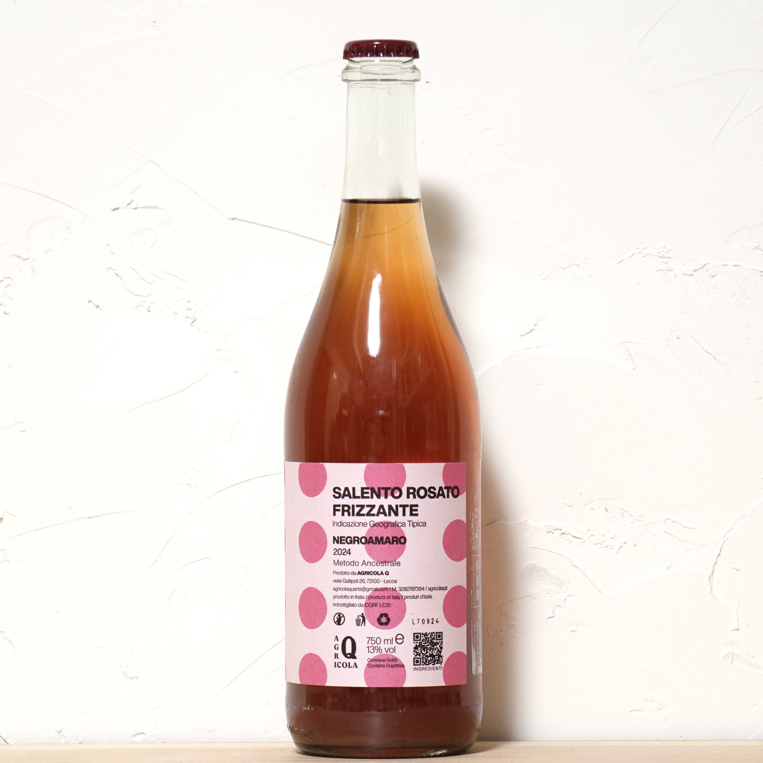 ベリー系の果実味が微発泡の泡と共にハジける!ミネラリーで爽快な味わいです。キリッと冷やして飲みたいですね。強い泡が苦手な方、フルーティーな泡が好きな方、おすすめです!(スタッフコメント)_____ダイレクトプレスしたネグロアマーロで造るロゼの微発泡(インポーター資料より)