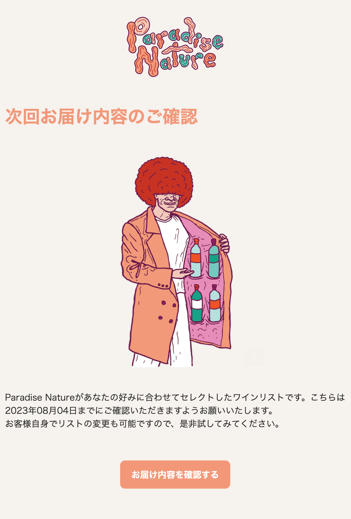 このステップだけでワインのお届けをお休みする事が出来るので、サブスクを躊躇している方にも御紹介したい機能です。